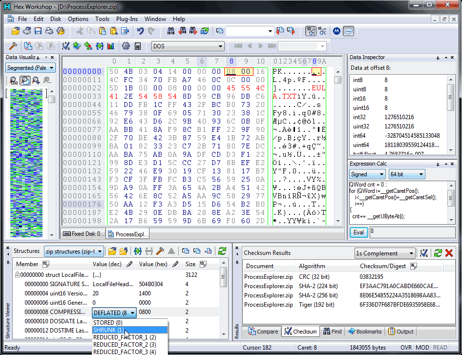 Hex Workshop包括一個具有磁碟映像工具的扇區編輯器,一個用於在十六進制,十進制和二進制資料類型之間進行轉換的基本轉換器,一個支援算術和按位運算的十六進制計算器,一個支援變量,條件,疊代和算術與按位運算的表達式計算器,以及資料可視化工具,旨在幫助您從渲染圖片中直觀地識別圖案和有趣的資料。還包括我們的資料檢查器,它使您可以快速編輯和查看以十進制,浮點或時間和日期表示形式的資料。
