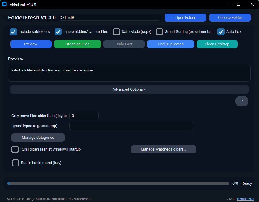FolderFresh 是一款專為 Windows 系統設計的自動化檔案管理工具。它透過智能識別和分類檔案的方式,將用戶的數位檔案自動分門別類,並整理到相應的資料夾中。