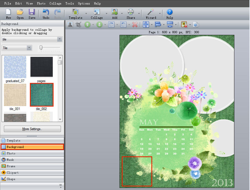 提供不同的相片拼貼背景畫面功使用者選擇。