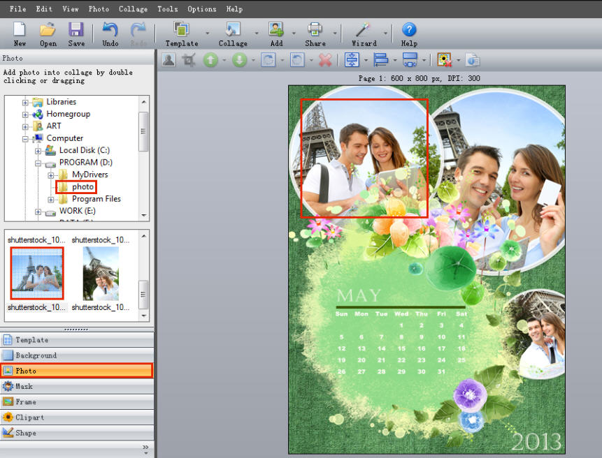 PearlMountain 相片大法師 用於將普通相片轉換成精彩的拼貼畫與朋友和家人分享,定格美好的記憶瞬間。只需要滑鼠點擊,即可建立出相簿、賀卡、月曆、年曆、邀請卡、相片海報等任何形式的相片拼貼畫。你可以在背景上任意排布多個相片、設定背景、新增相片邊框、遮罩、陰影、加入裝飾圖片、文字和月曆、對相片進行效果調節等。製作完成後,你可以將拼貼畫保存為圖片檔,透通印表機列印出來,設定為桌面桌布,透過電子郵件發送給家人和朋友。
