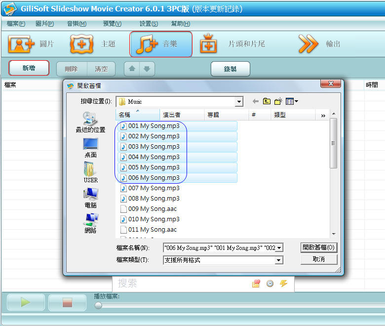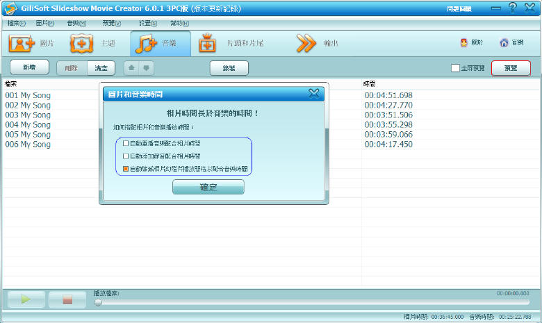 幫您的相片幻燈片加上背景音樂。(GiliSoft 相片幻燈片製作)