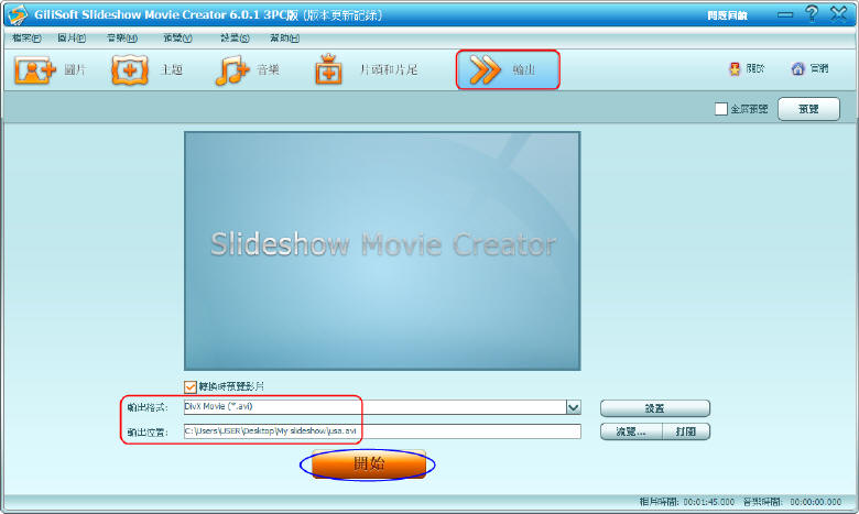 點選"輸出"並設定輸出格式與儲存位置,按"開始"