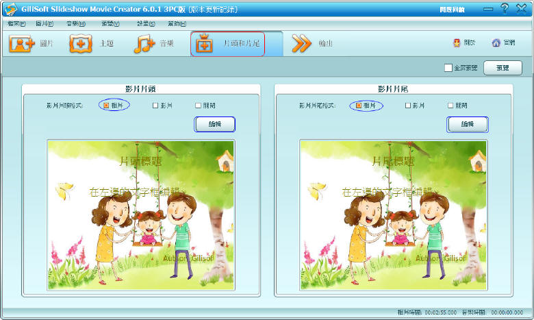 幫您的相片幻燈片加上片頭和片尾的註記。(GiliSoft 相片幻燈片製作)