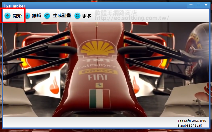 當我們調整到適當或預定範圍大小時,只要把軟體移動到想要錄製的區域上,再按下『開始』,就會開始錄製。