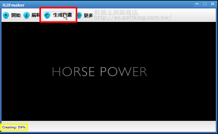 完成,再點下『生成動畫』,就會自動產生動態 GIF,而左下角,我們可以看到目前的進度。