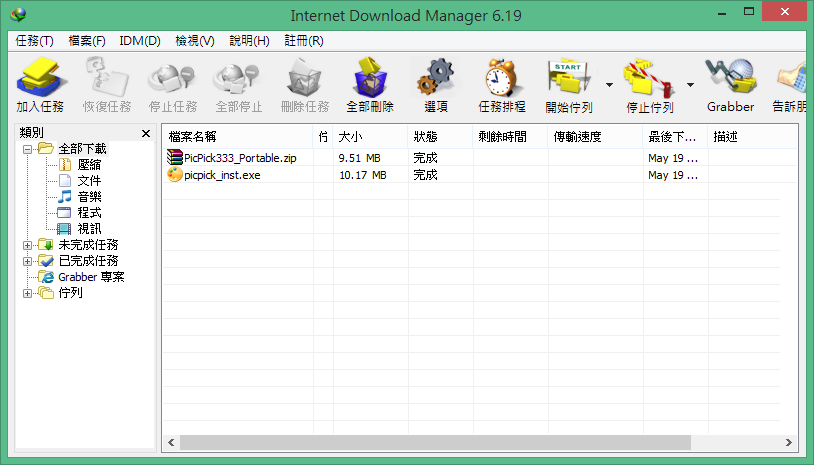 多點續輸軟體,讓你不再下載檔案到一半時結束或停止了,讓你完整的完成下載。(Internet Download Manager)