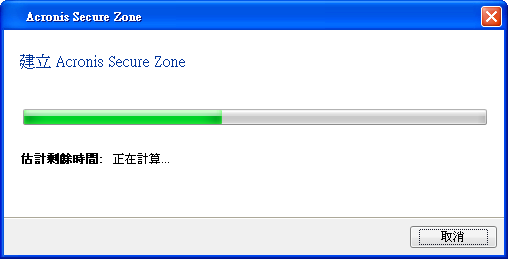 Acronis 正在幫我們進行一些調整,並且建立安全區。 但是,在調整的過程,請不要任意拔除電腦電源、關機、取消動作或其他因素造成調整的中斷,否則可能會造成電腦資料嚴重毀損或遺失……等狀況。