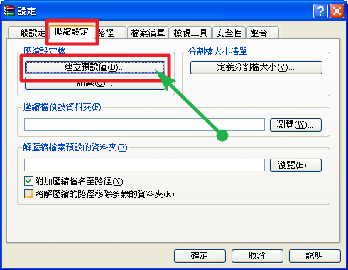 進入設定畫面後,先切換到『壓縮設定』,再按下【建立預設值】。