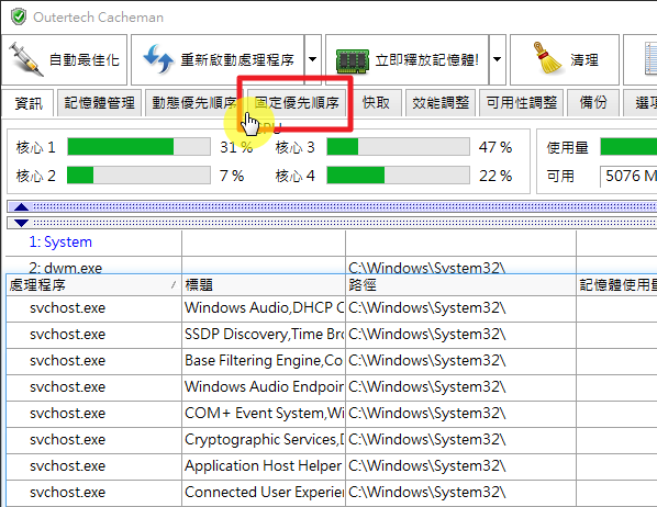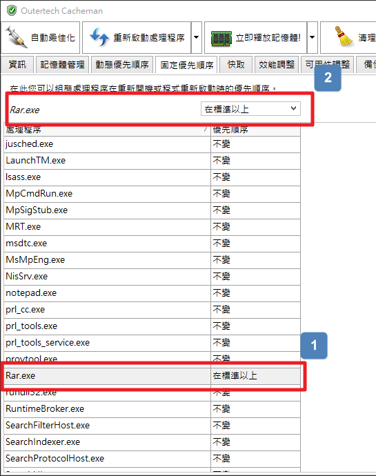 提高某個應用程式的執行優先權,可讓該應用程式獲得更好的執行效能。(Cacheman)