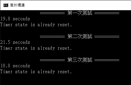 相同的來源檔案,也同樣執行著三次解壓縮,每次解壓縮之前也都會先將已解壓的檔案刪除,唯一的不同是,我們將優先順序,從原本的「標準」提升至「在標準之上」。 最後結果,我們可以發現,平均三次解壓縮的時間,已從原本的 26 秒左右,縮短至平均大約 20 秒。