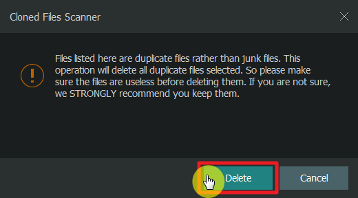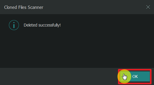 最後,出現成功的訊息,那些重複的檔案就刪除了。 ※ 根據軟體預設狀態,它們不會馬上從電腦中刪除,而是會先丟到資源回收筒裡。也就是說資源回收筒是最後一道的保險,可避免我們誤刪檔案。