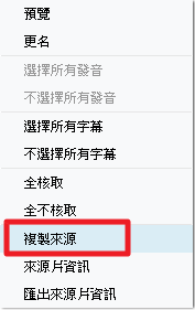 看到右鍵選單後,直接點選「複製來源」。 ※ 這種方式適合我們只需要少部份的章節時使用。